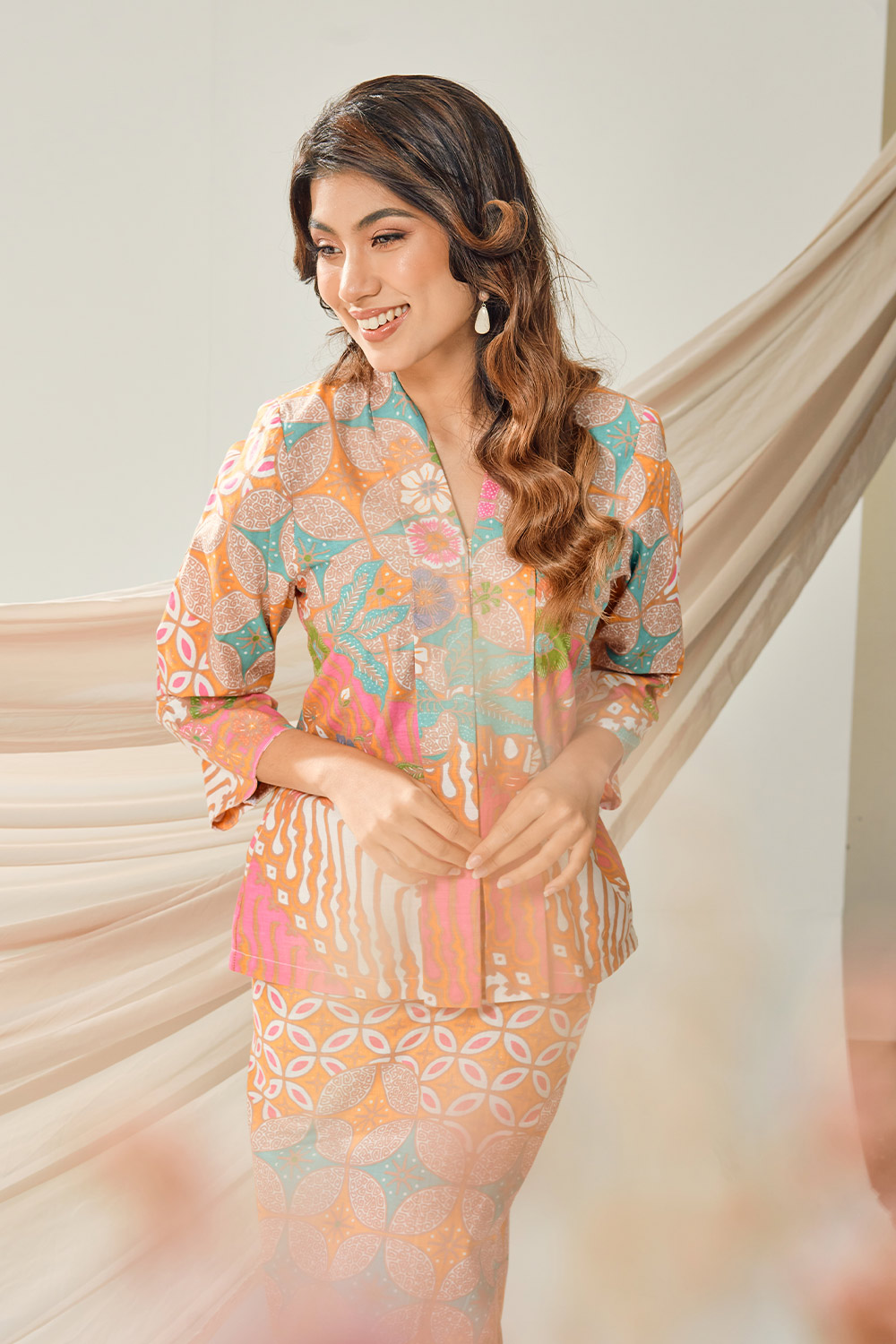 Adonia Kebaya is our classic batik kebaya that is made from premium Premium Handstamp Batik Cotton, thus this Flowery Kebaya Batik is elegance with its essence of sophistication. It's an oufit will give you an elevated look with its stunning floral detail! Absolutely you'll be sure to stand out in any occasion!