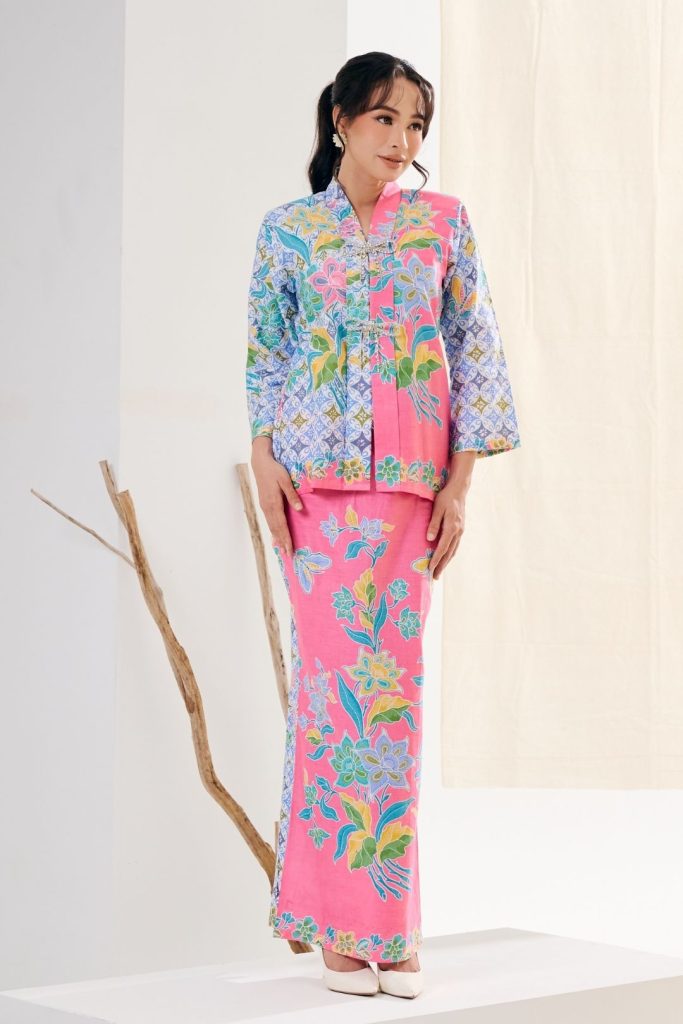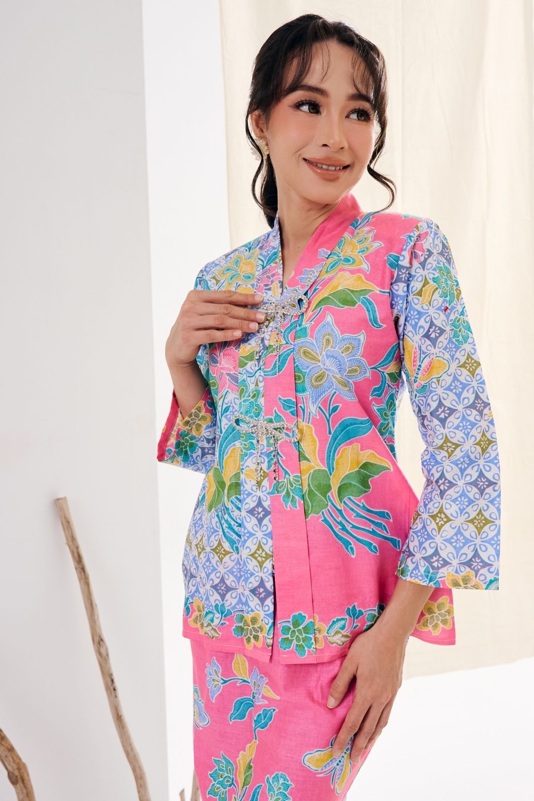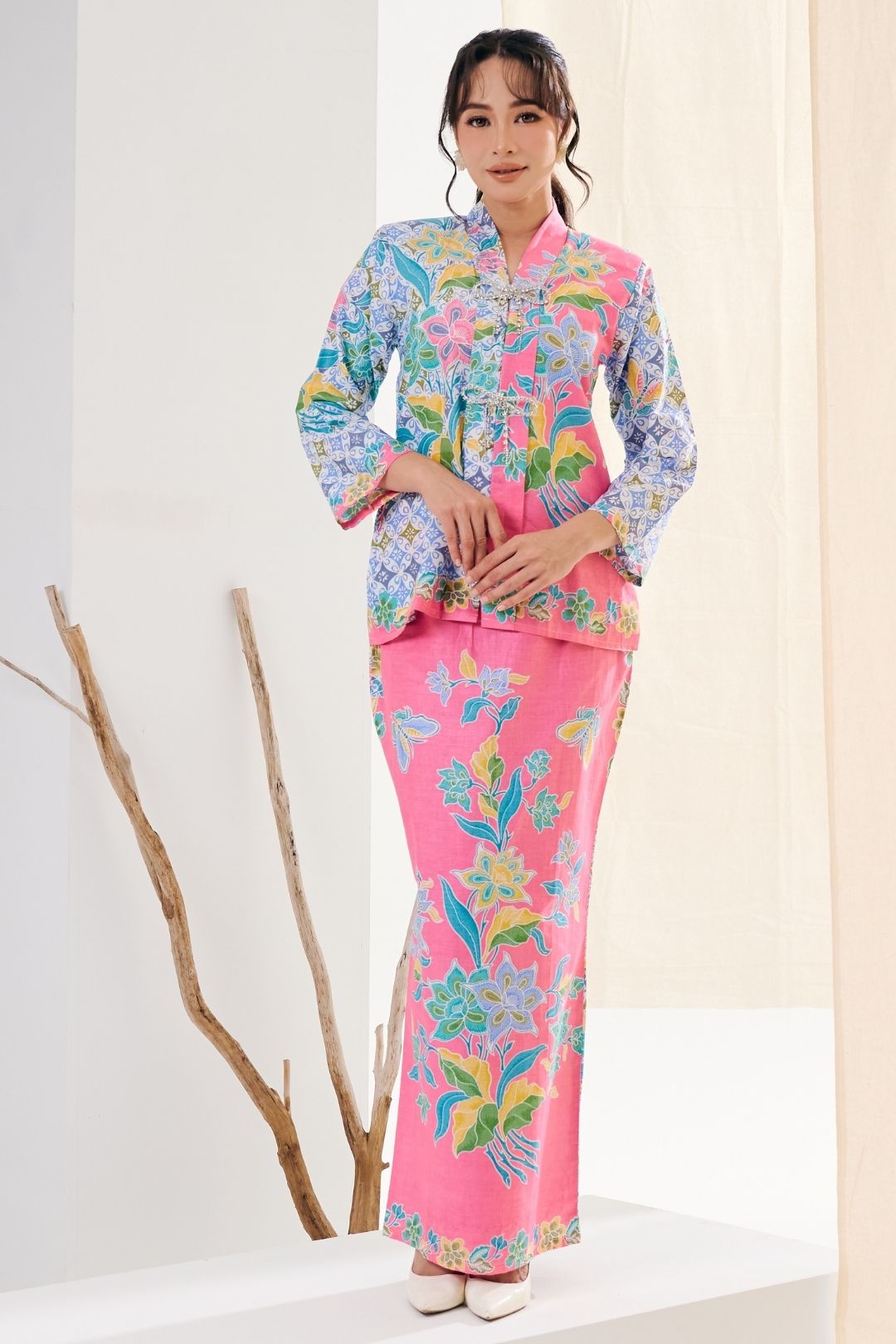 Adora Kebaya is a timeless classic, crafted entirely from premium Handstamp Batik Cotton. Every piece is a celebration of elegance, with the flowery batik patterns bringing sophistication to life.