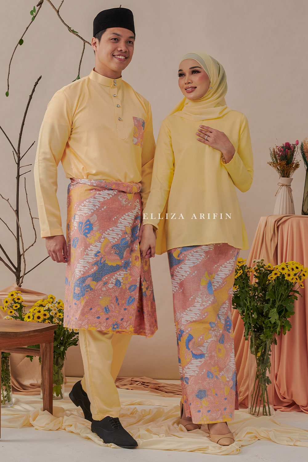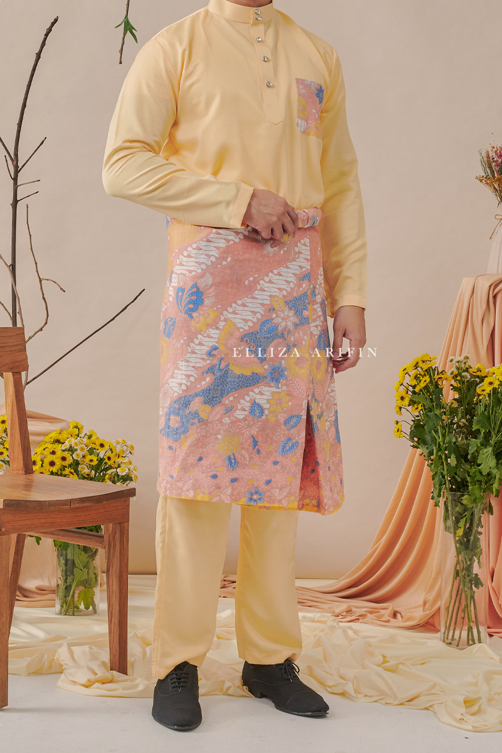 Baju Melayu Batik in Lemon Yellow