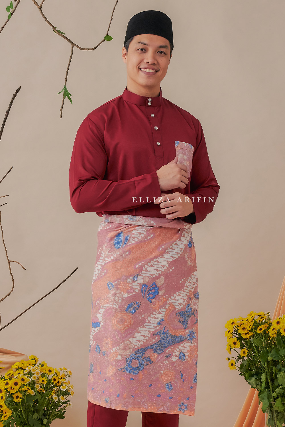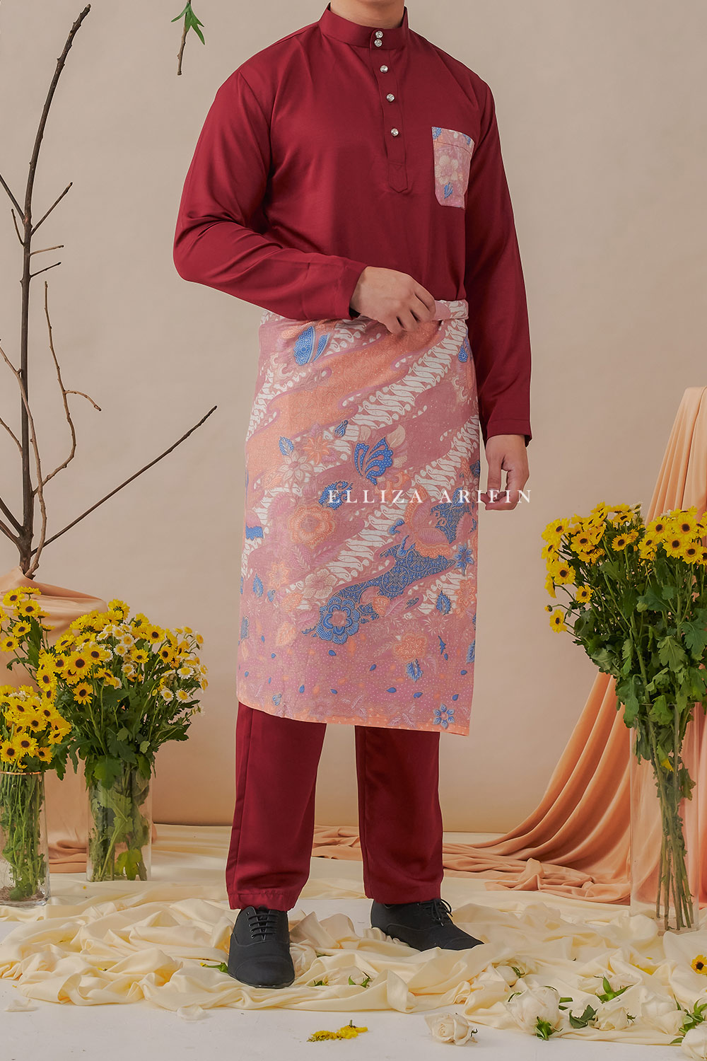 Baju Melayu Batik in Maroon