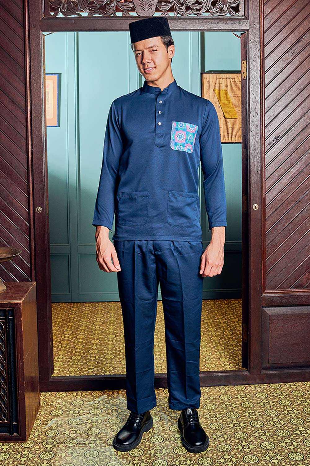Baju Melayu Batik in Navy Blue
