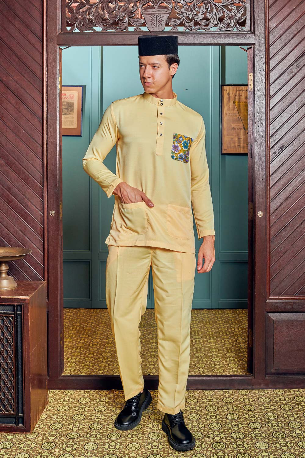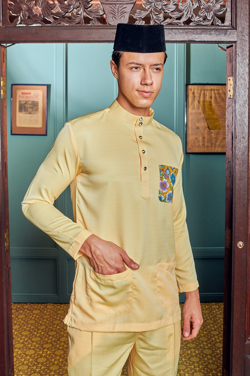 Baju Melayu Batik in Pastel Yellow