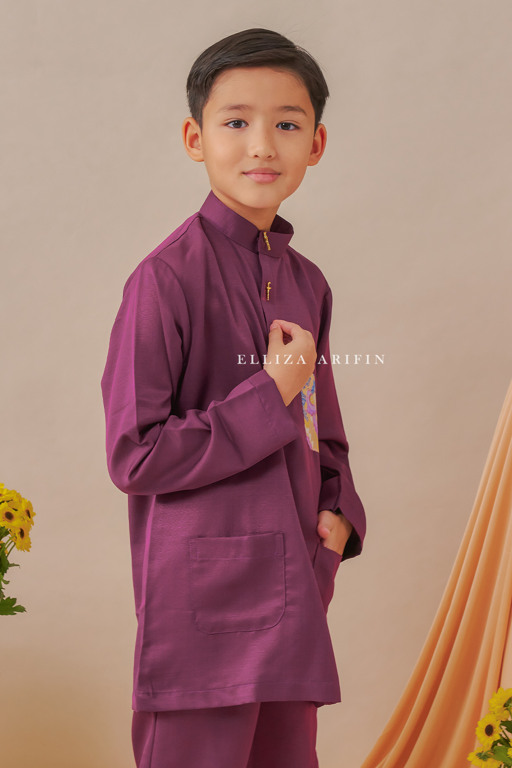 Baju Melayu Batik Kids comes in 13 beautiful colors. The design is timeless, cool, and neat. It has 3 pockets that make it practical for Raya and also as daily wear. One of the pockets is made of Premium Handstamp Batik Cotton. It will definitely make you shine from others on Raya!