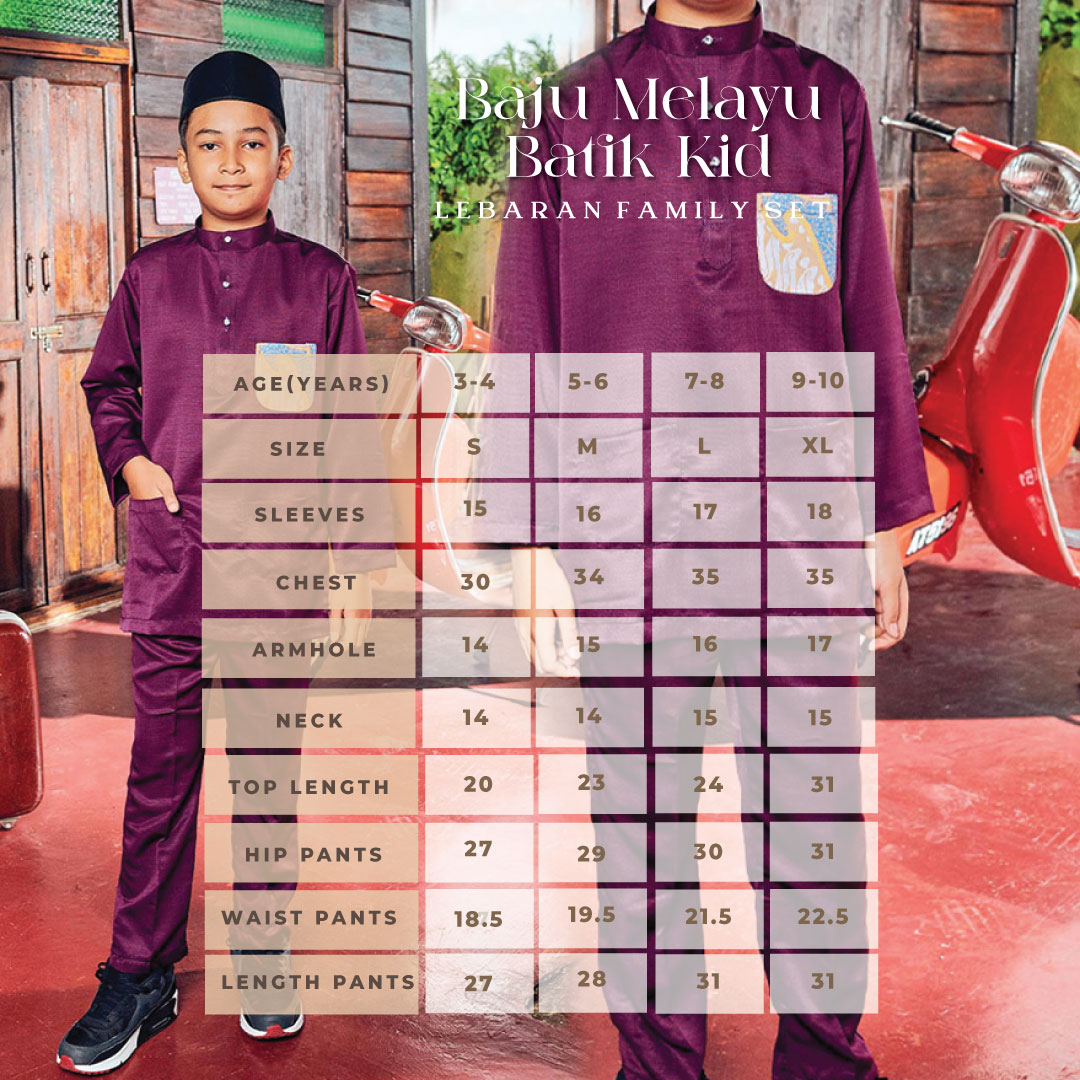 BAJU MELAYU BATIK | 3-4 YEARS S | 5-6 YEARS M | 7-8 YEARS L | 9-10 YEARS XL |