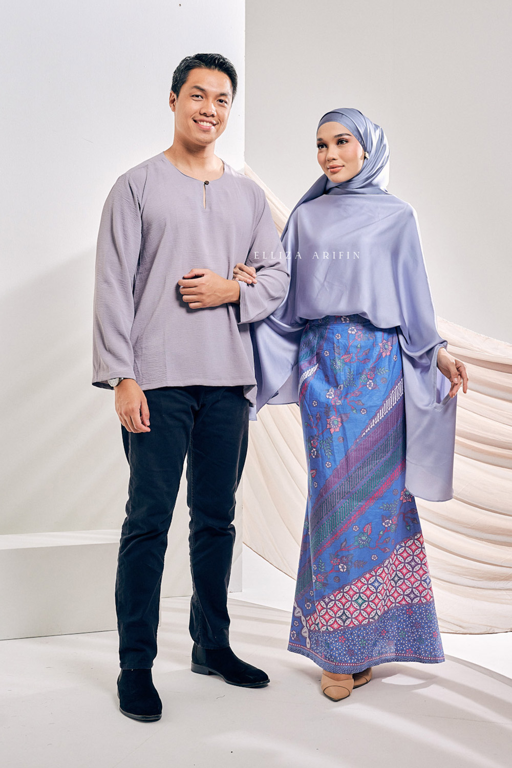 Batwing cut from a luxurious matte satin fabric with the perfect shades, this delicate caftan paired with mermaid-cut batik skirt will make you the most stunning person in the room on your Raya celebration. This cCaftan Anggun set has a very loose fit, giving you all the comfort, yet will still flatter your figure!