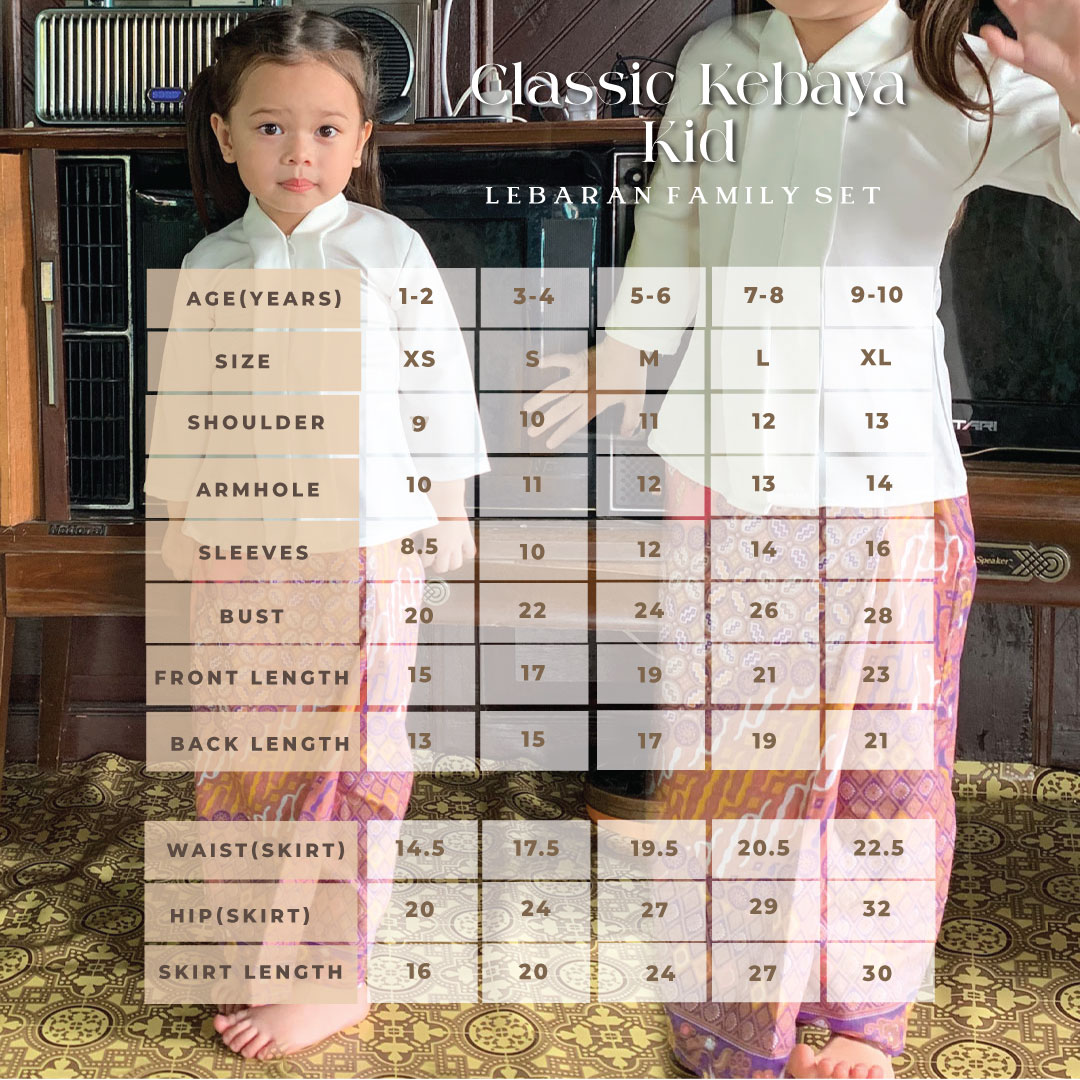Classic Kebaya Batik 1-2 YEARS (XS) 3-4 YEARS (S) 5-6 YEARS (M) 7-8 YEARS (L) 9-10 YEARS (XL)