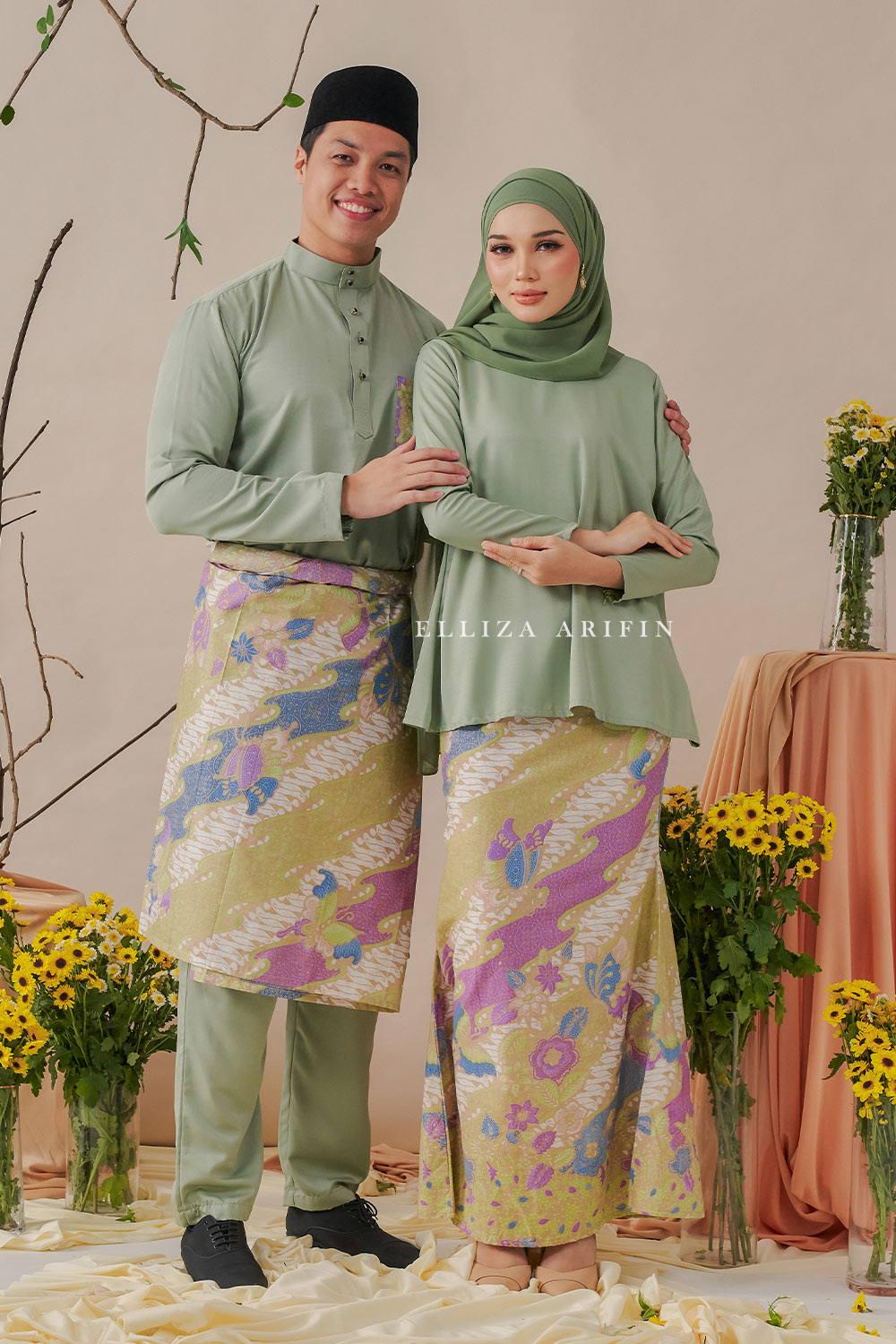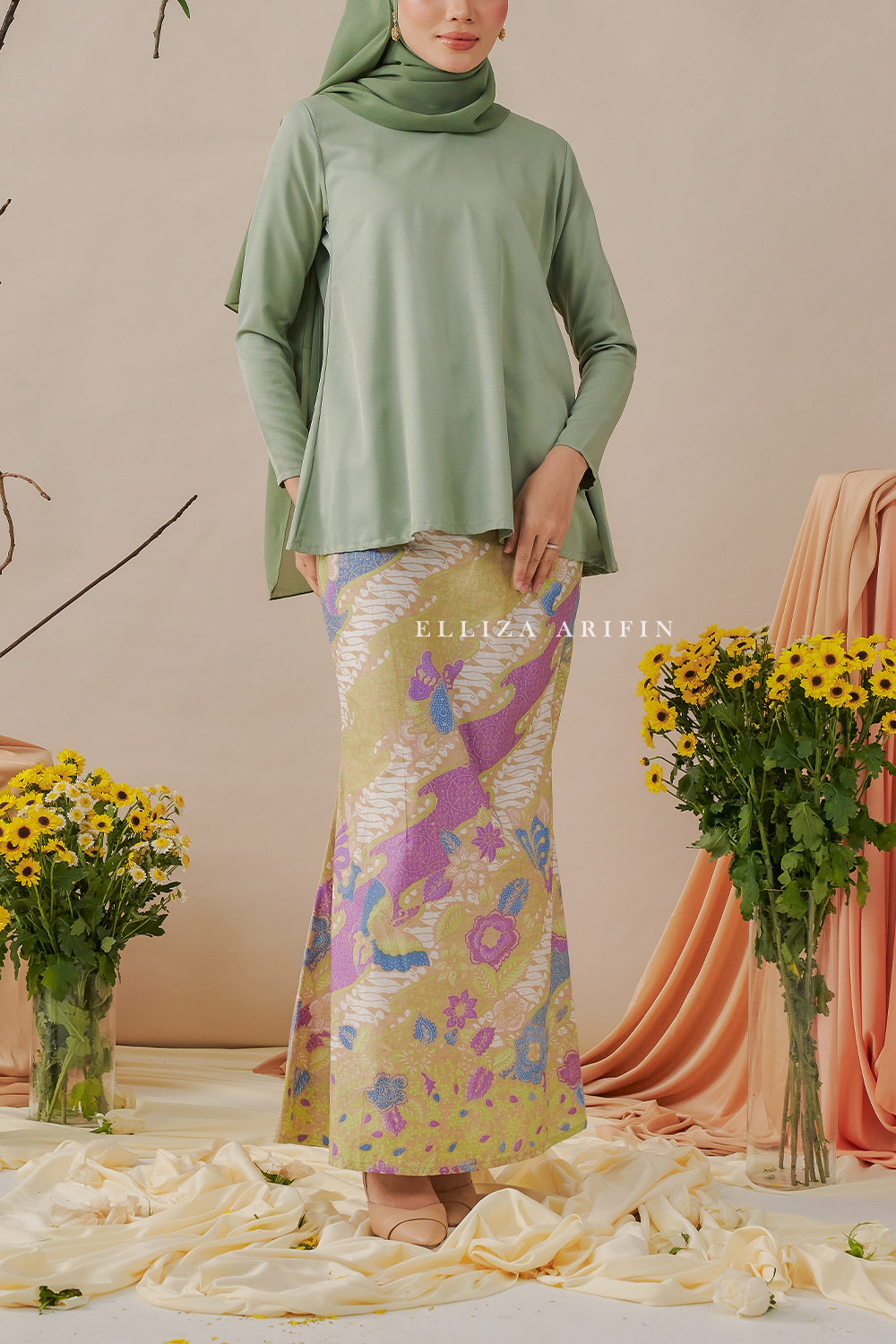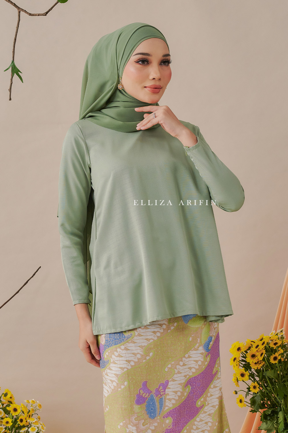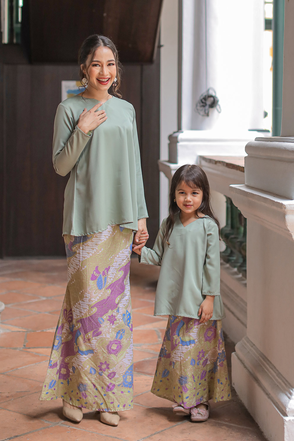 Delisha Kurung Batik in Sage Green