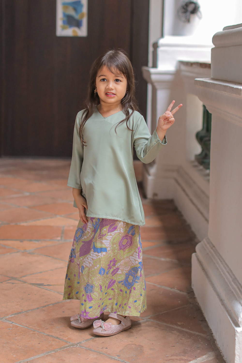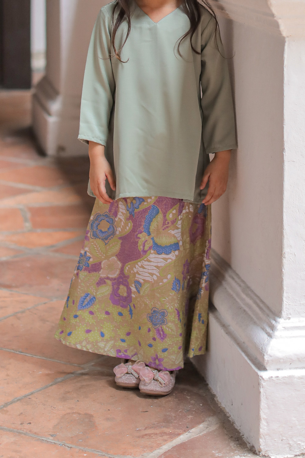 Delisha Kurung Batik Kids in Sage Green Delisha Kurung Batik Kids in Sage Green