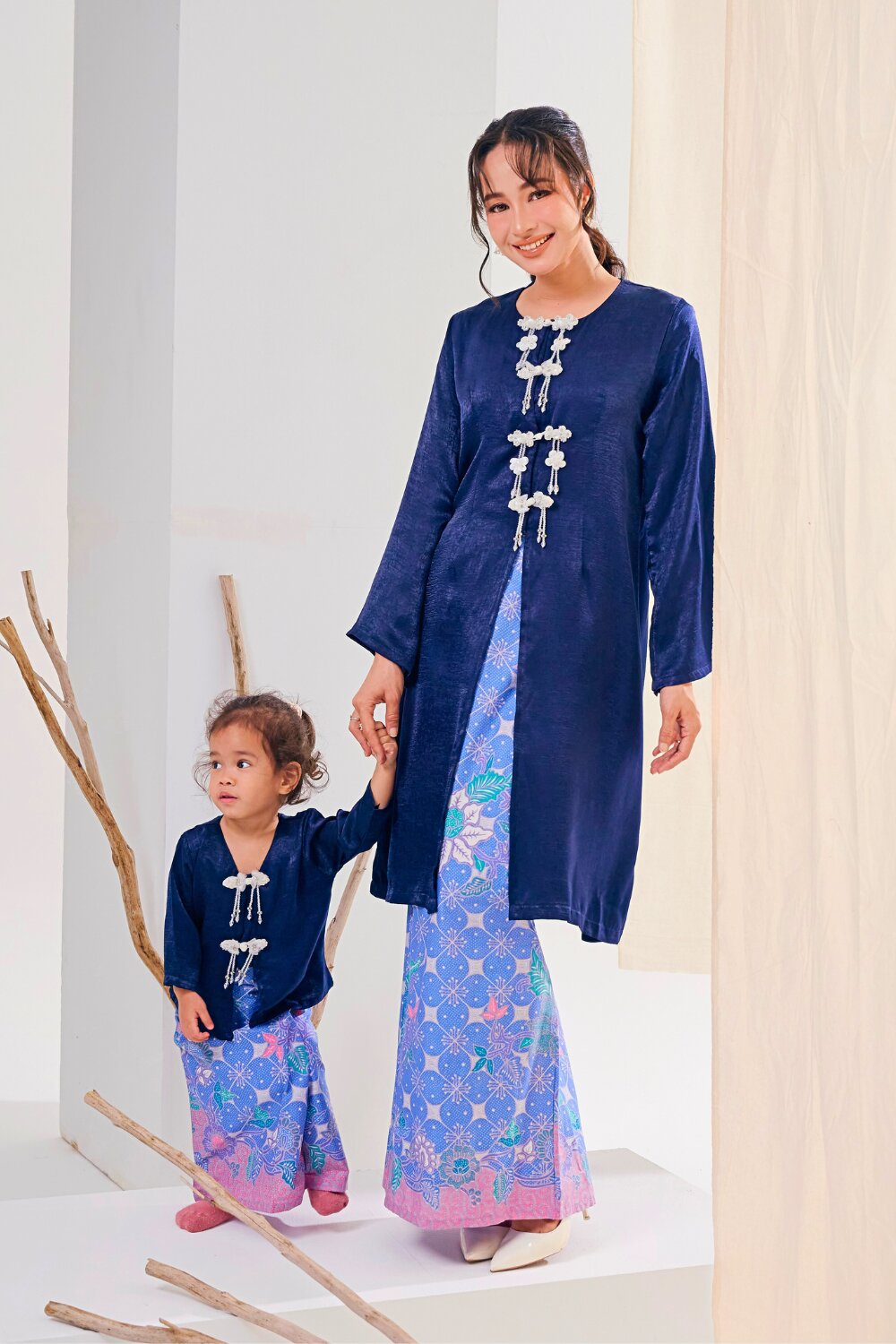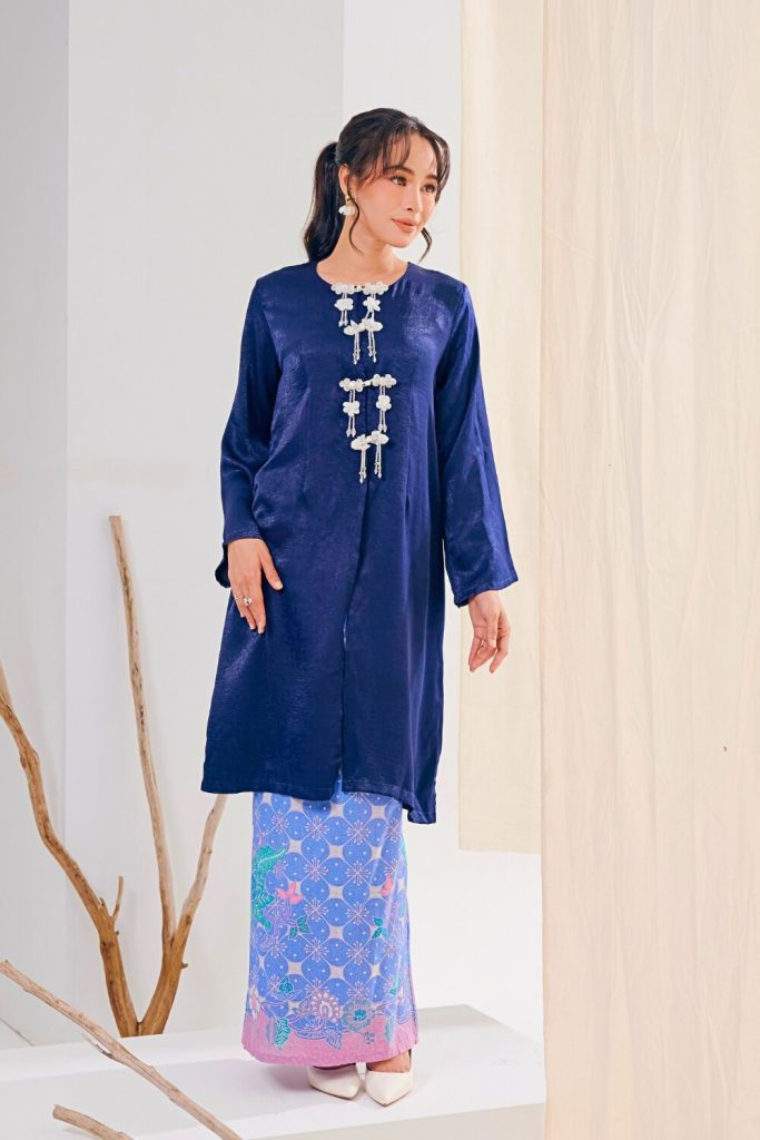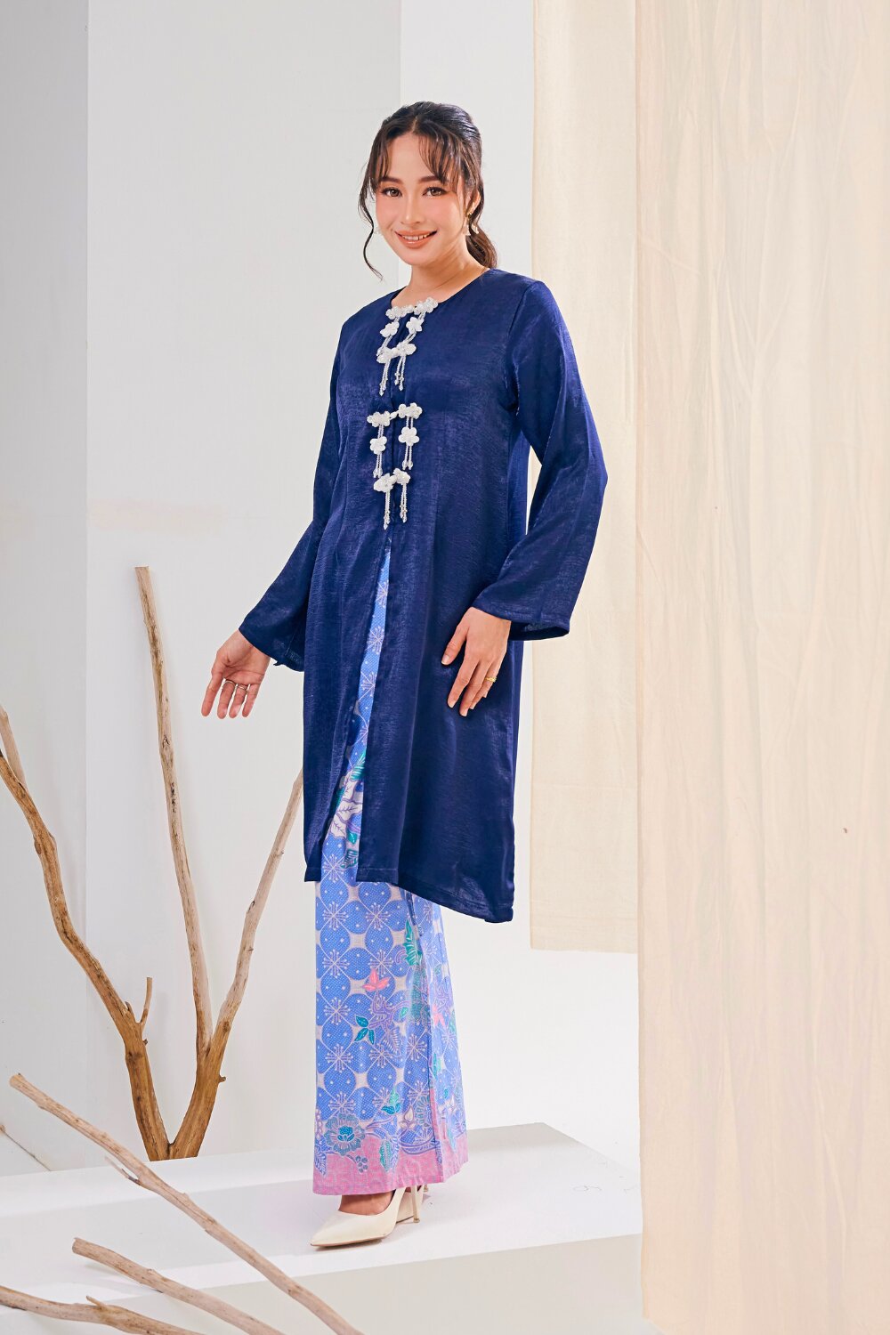 Crafted from a soft, flowy fabric with a subtle sheen, our Kabarung  embodies refined femininity and effortless grace. The relaxed yet elegant cutting drapes beautifully along the silhouette, offering comfort while maintaining a polished look. Delicate crystal buttons adorn the front of the baju, adding a touch of understated sparkle that elevates the overall design.