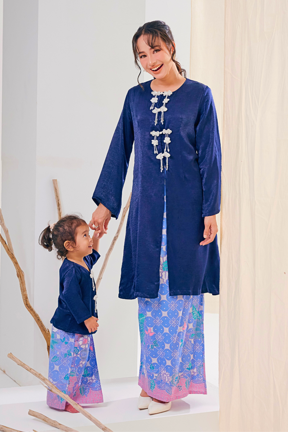 Straight cut from a luxurious matte satin fabric with the perfect shades, this delicate caftan paired with mermaid-cut batik skirt will make you the most stunning person in the room on your Raya celebration. This Kurung Anggun Kids set has a very loose fit, giving you all the comfort, yet will still flatter your figure!