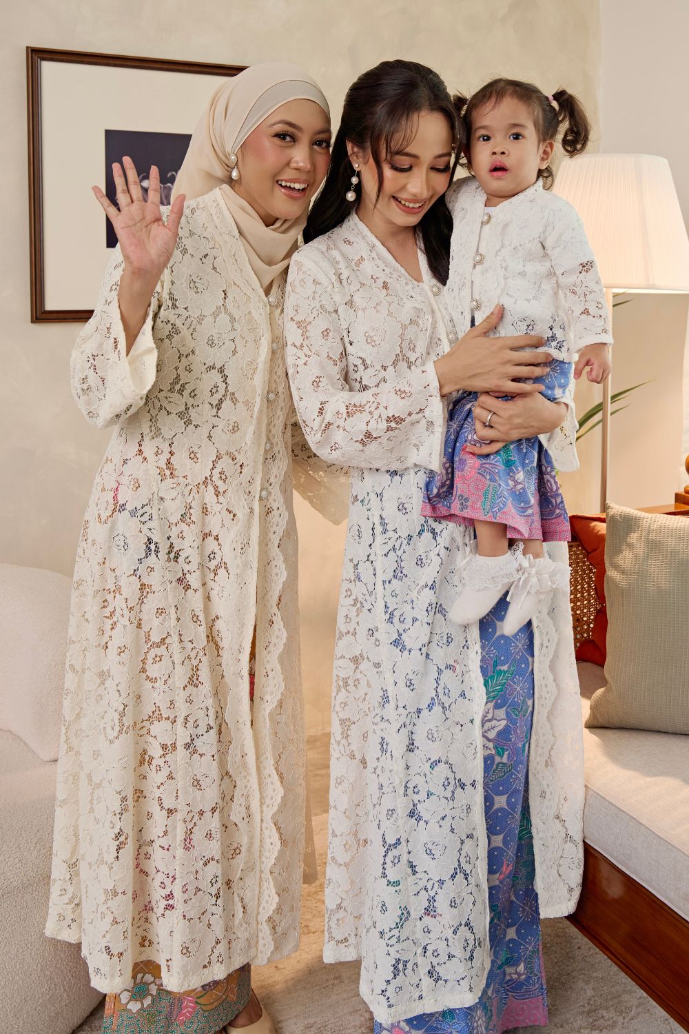The intricate lace detailing adds a touch of sophistication, while the soft, breathable fabric ensures all-day comfort. Pair it with our vibrant batik skirts to complete the look — perfect for creating unforgettable matching moments with your children.