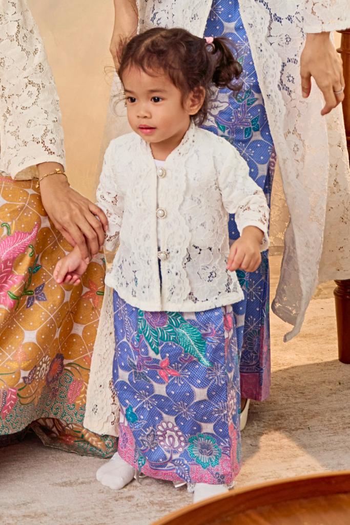 The intricate lace detailing adds a touch of sophistication, while the soft, breathable fabric ensures all-day comfort. Pair it with our vibrant batik skirts to complete the look — perfect for creating unforgettable matching moments with your children.