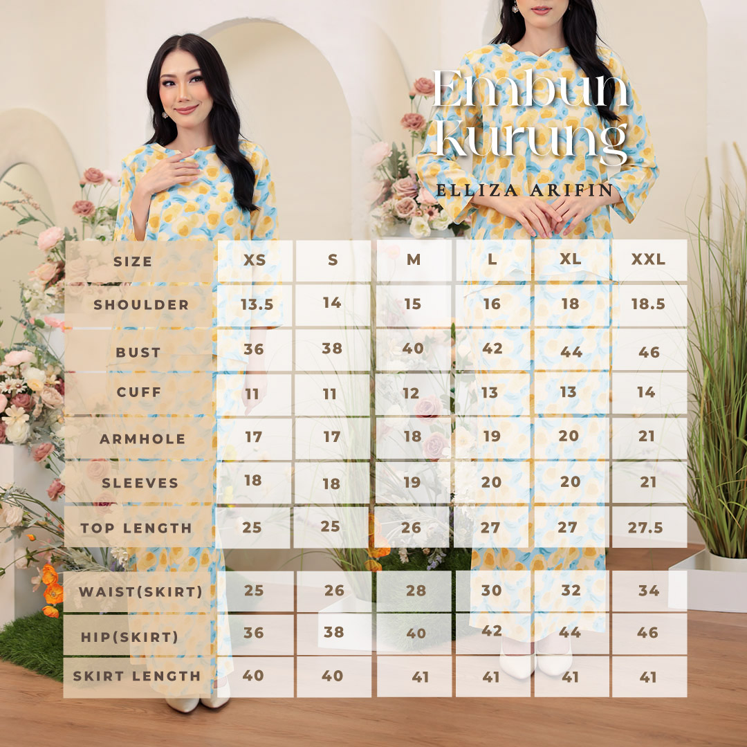 | Embun Kurung | XS | S | M | L | XL | XXL |