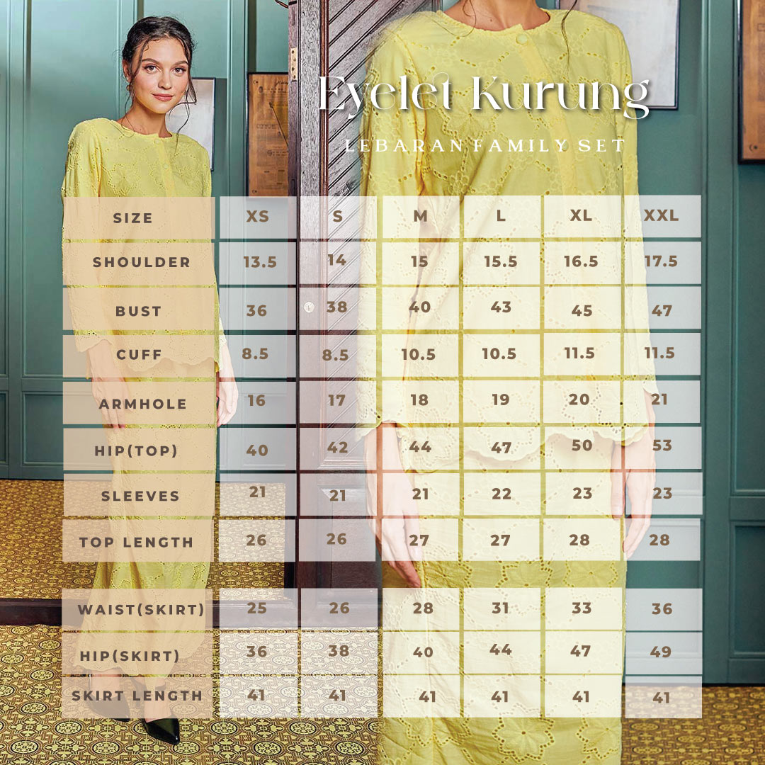 | Eyelet Kebaya | XS | S | M | L | XL | XXL |