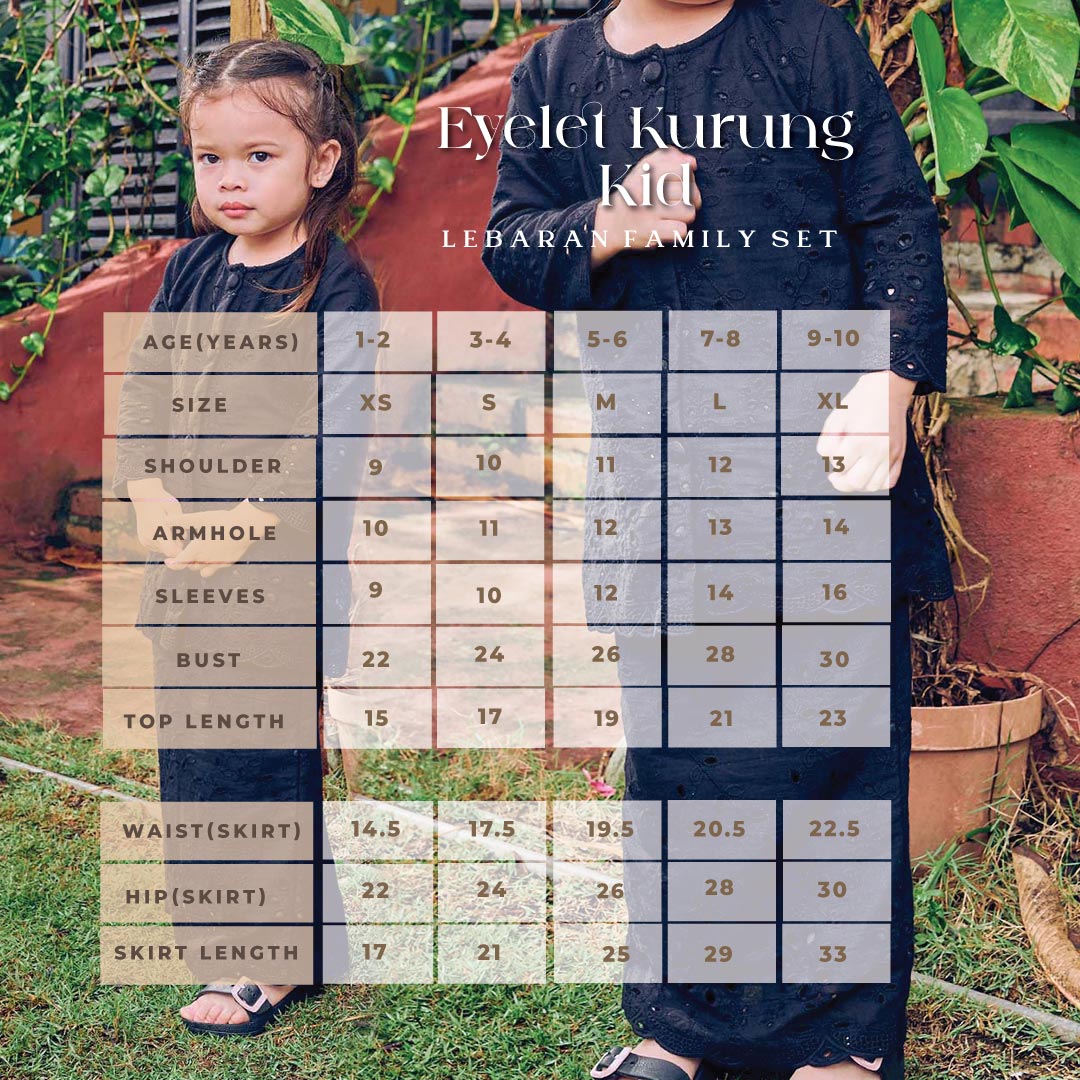 | EYELET KURUNG | 1-2 YEARS (XS) | 3-4 YEARS (S) | 5-6 YEARS (M) | 7-8 YEARS (L) | 9-10 YEARS (XL) |