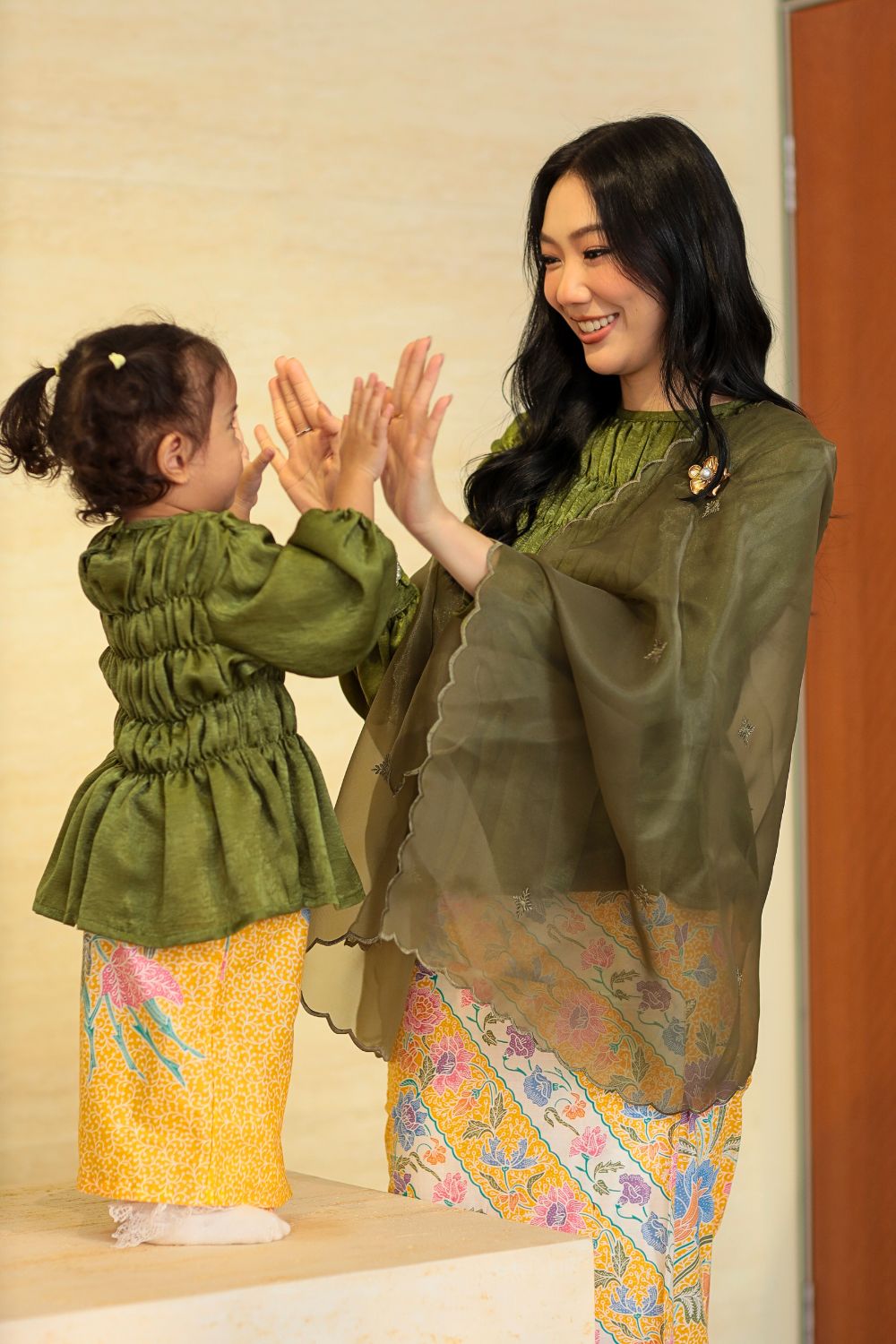 Made from lightweight, breathable fabric with a soft feel on the skin, this kurung set keeps your child comfortable throughout the day. The ruffle detailing on the top adds a gentle, playful touch, while the relaxed silhouette allows easy movement without feeling restrictive.