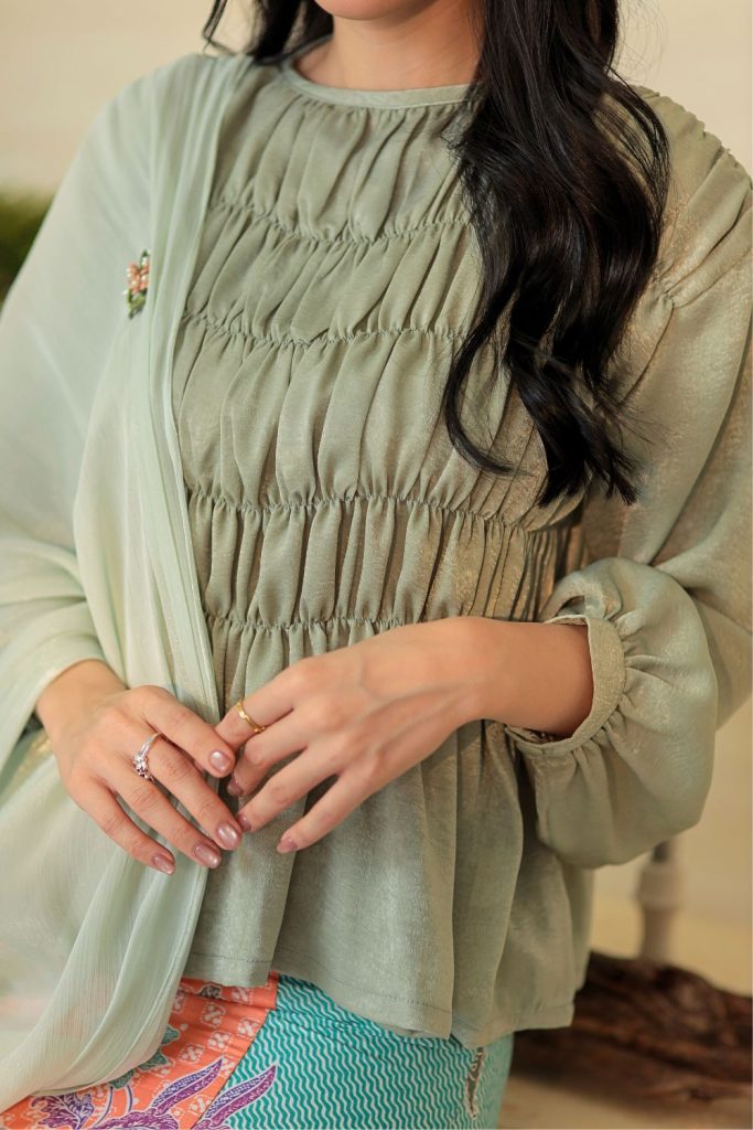 Paired with a matching skirt crafted from smooth, comfortable material, the outfit falls neatly when worn, creating a polished yet effortless look. The coordinated prints and soft colour palette give it a timeless festive feel — perfect for family gatherings, celebrations, and capturing beautiful moments together.