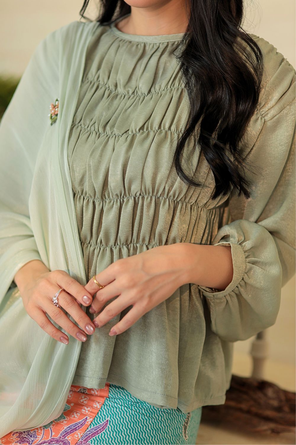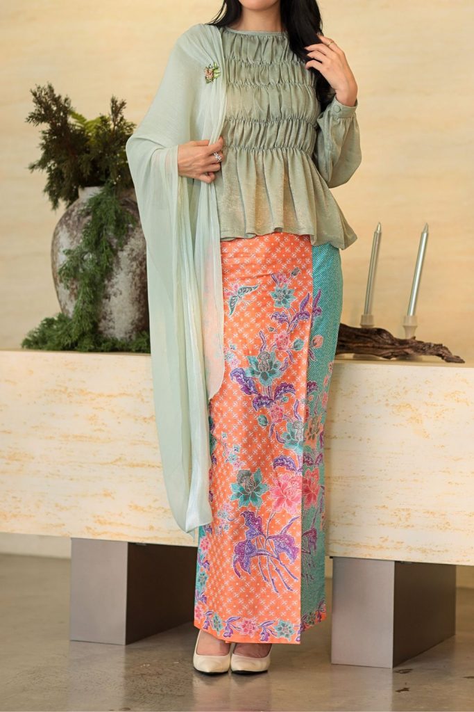 Grace Kurung Batik in Matcha Apricot Grace Kurung Batik in Matcha Apricot