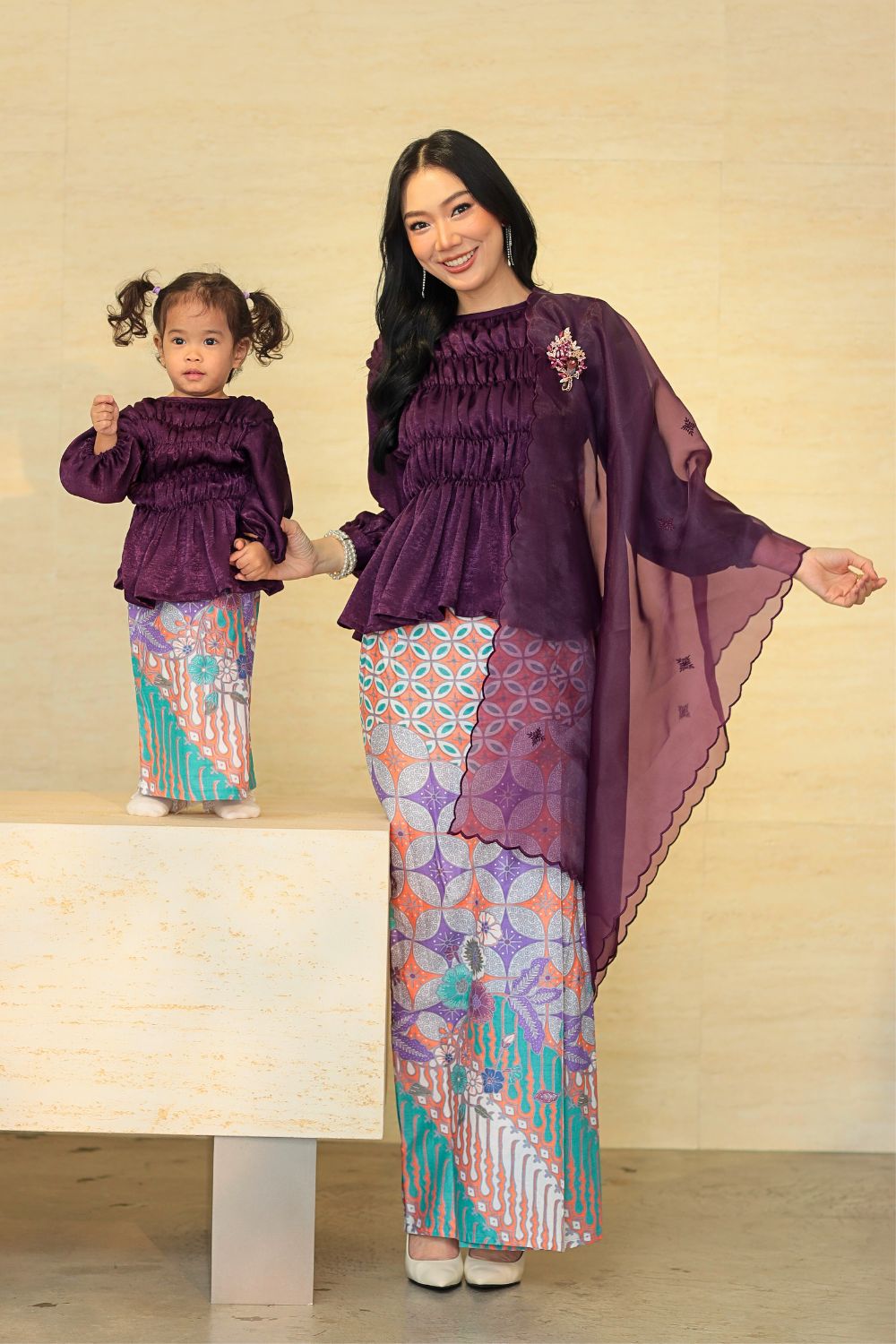Made from lightweight, breathable fabric with a soft feel on the skin, this kurung set keeps your child comfortable throughout the day. The ruffle detailing on the top adds a gentle, playful touch, while the relaxed silhouette allows easy movement without feeling restrictive.