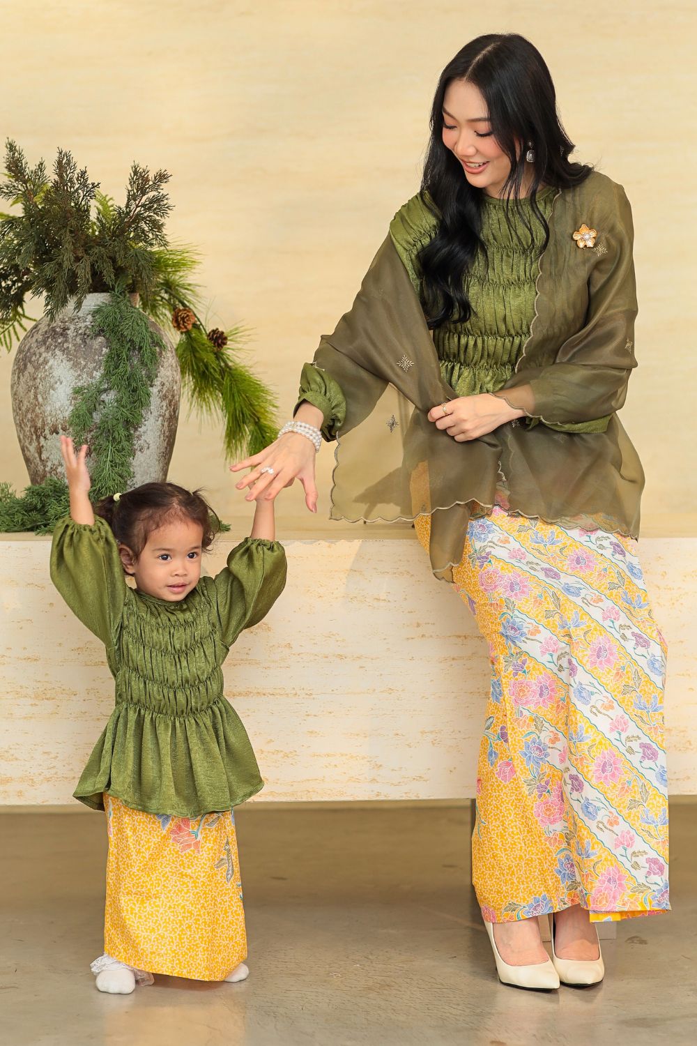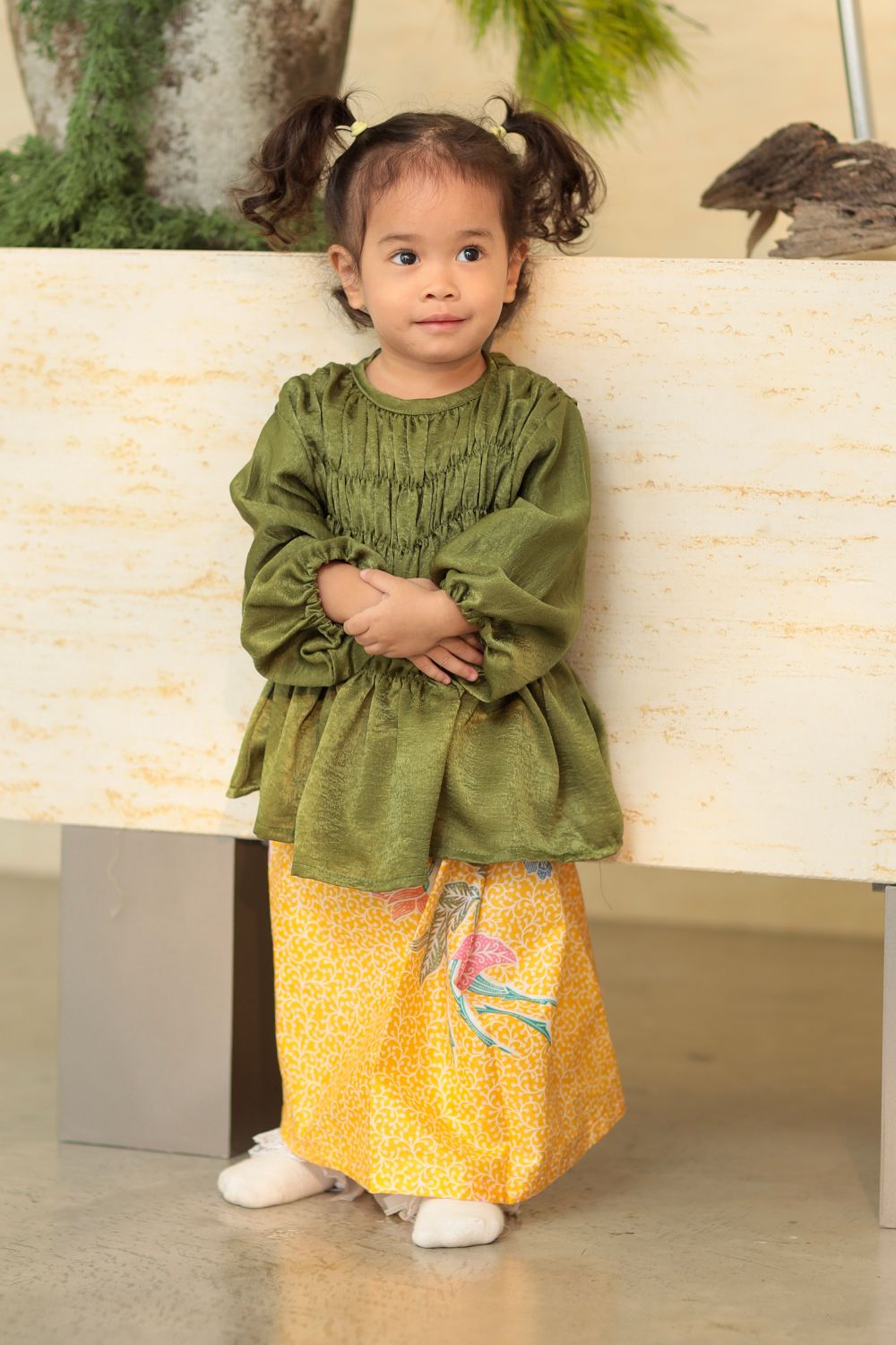 Grace Kurung Batik Kids in Matcha Lemonade