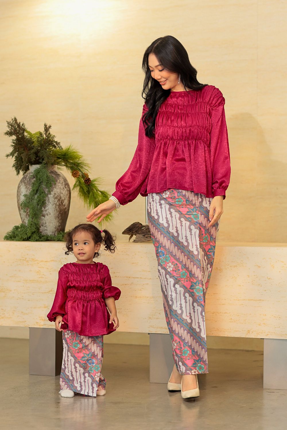 Grace Kurung Batik Kids in Raspberry Velvet