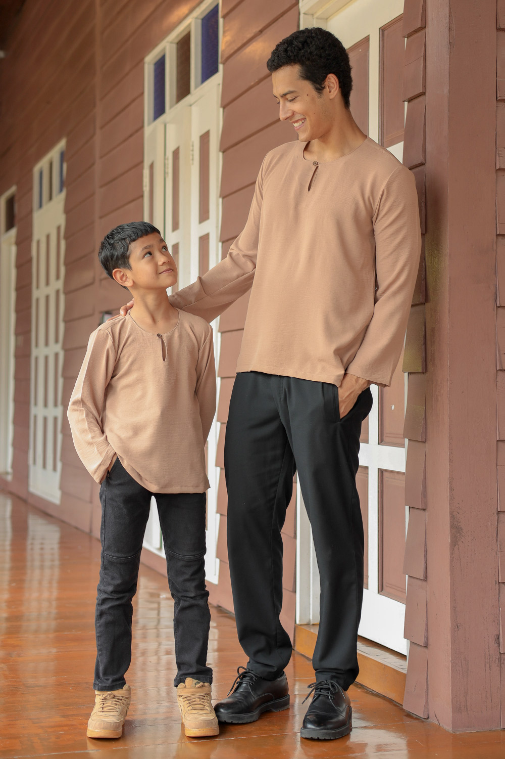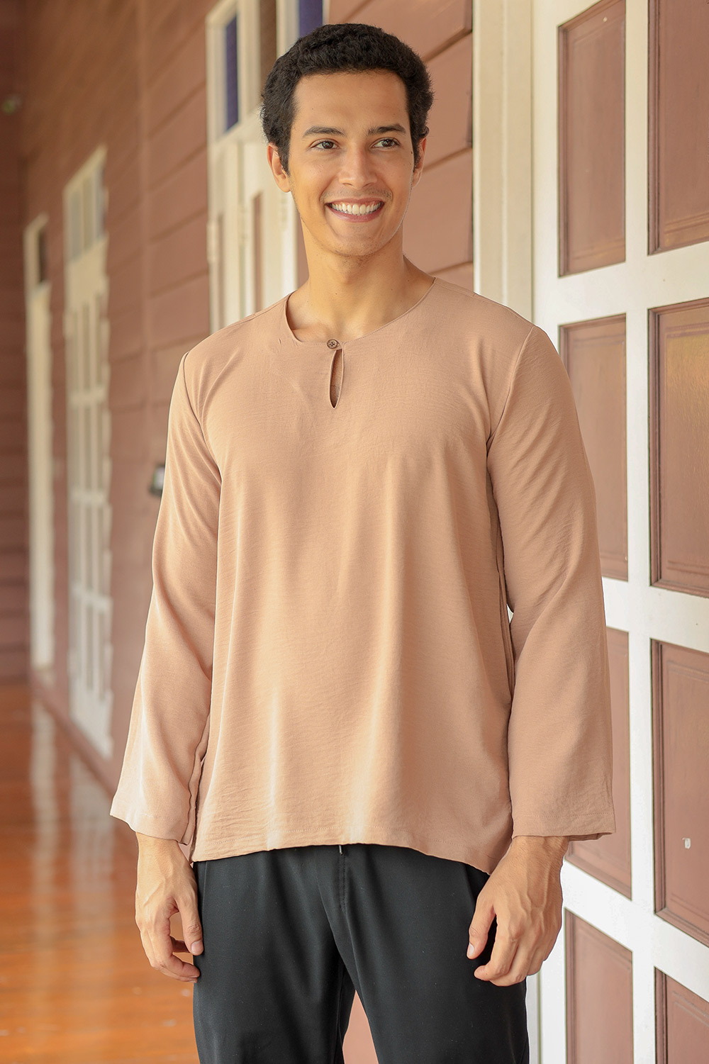 Kurta Arjuna comes in beautiful pastel colors. The design is both cool and classy. The kurta has both side pockets that make it practical for Raya and also as daily wear. The kurta is the perfect gift for your father or son!