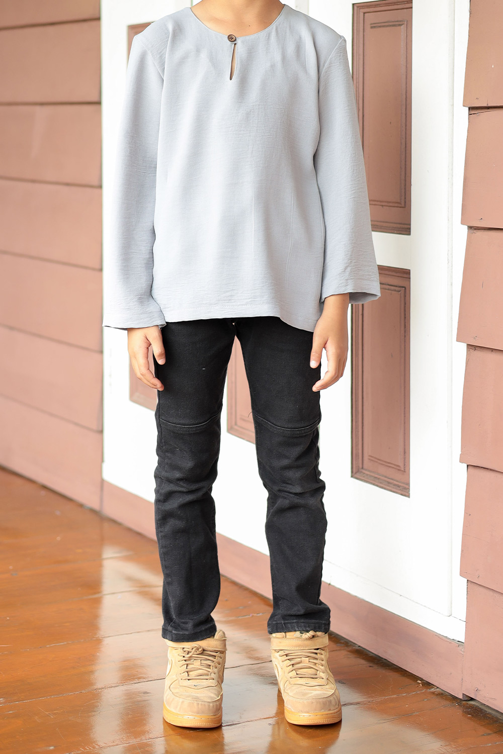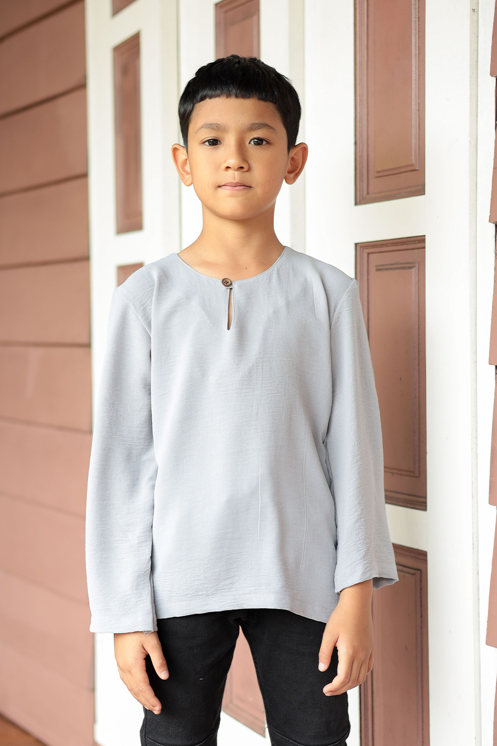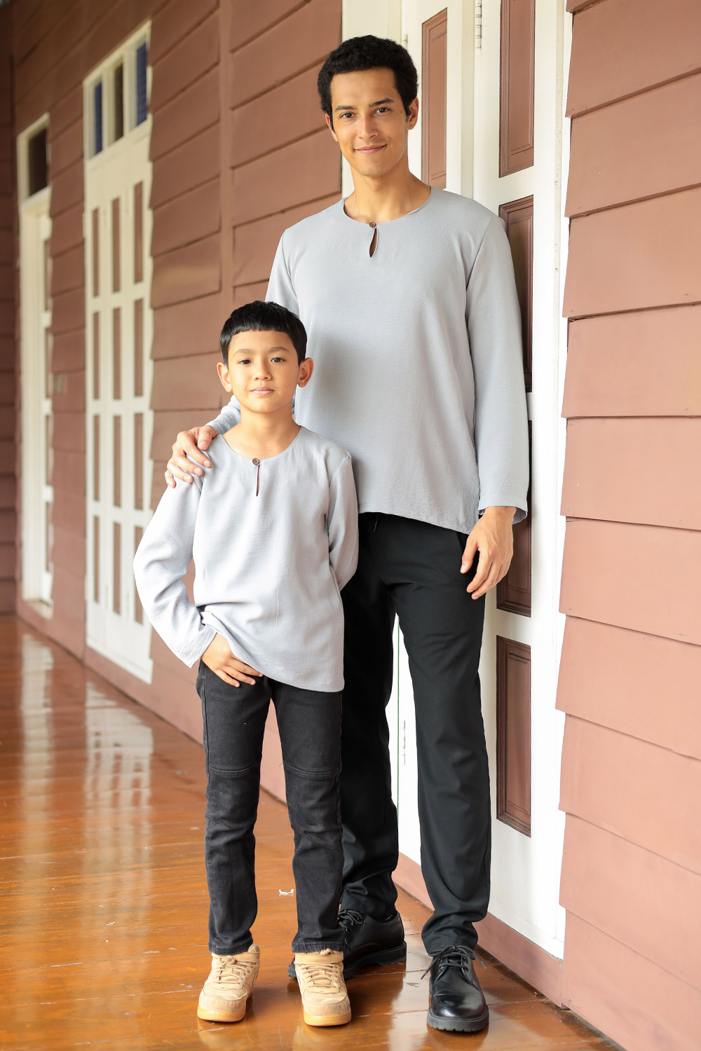 Kurta Arjuna Kids comes in beautiful pastel colors. The design is both cool and classy. The kurta has both side pockets that make it practical for Raya and also as daily wear. The kurta is the perfect gift for your son!