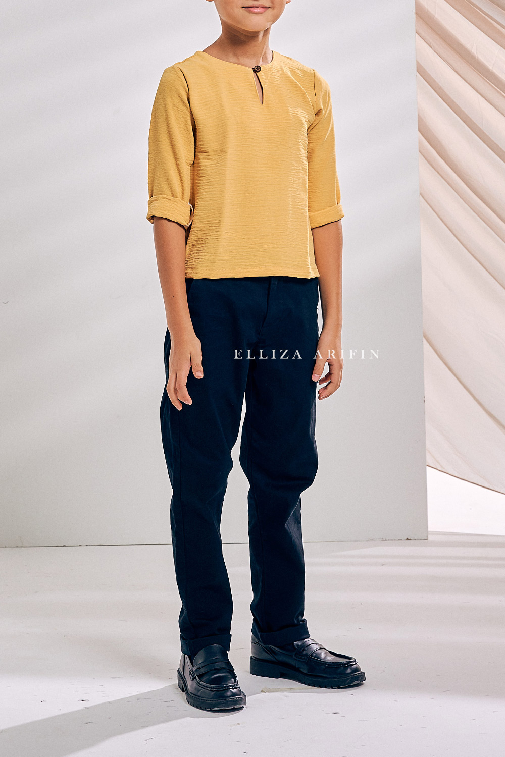 Kurta Arjuna Kids comes in beautiful pastel colors. The design is both cool and classy. The kurta has both side pockets that make it practical for Raya and also as daily wear. The kurta is the perfect gift for your son!