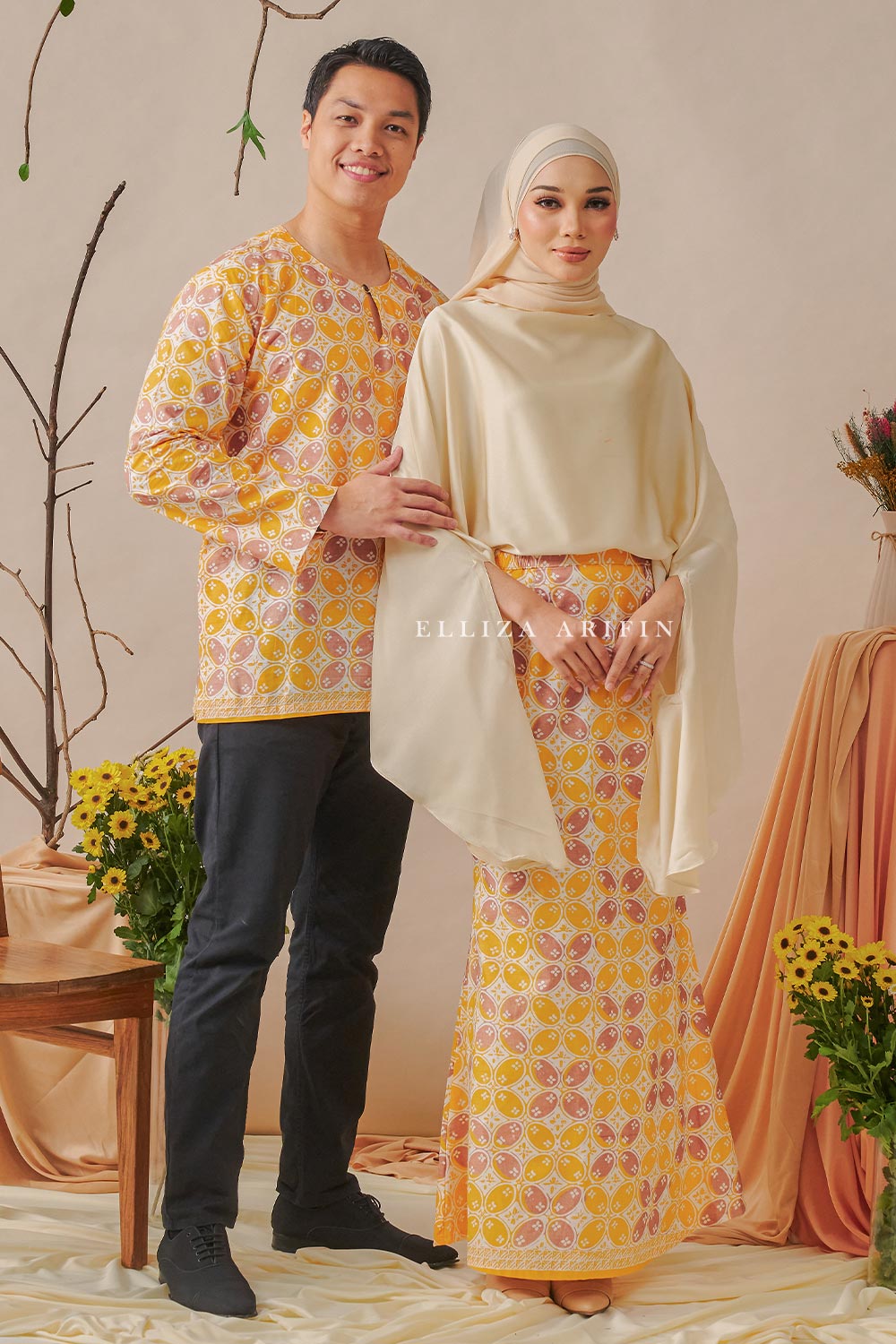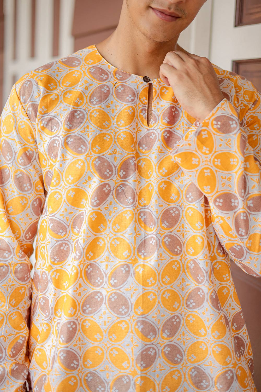 Baju Melayu Batik in Yellow