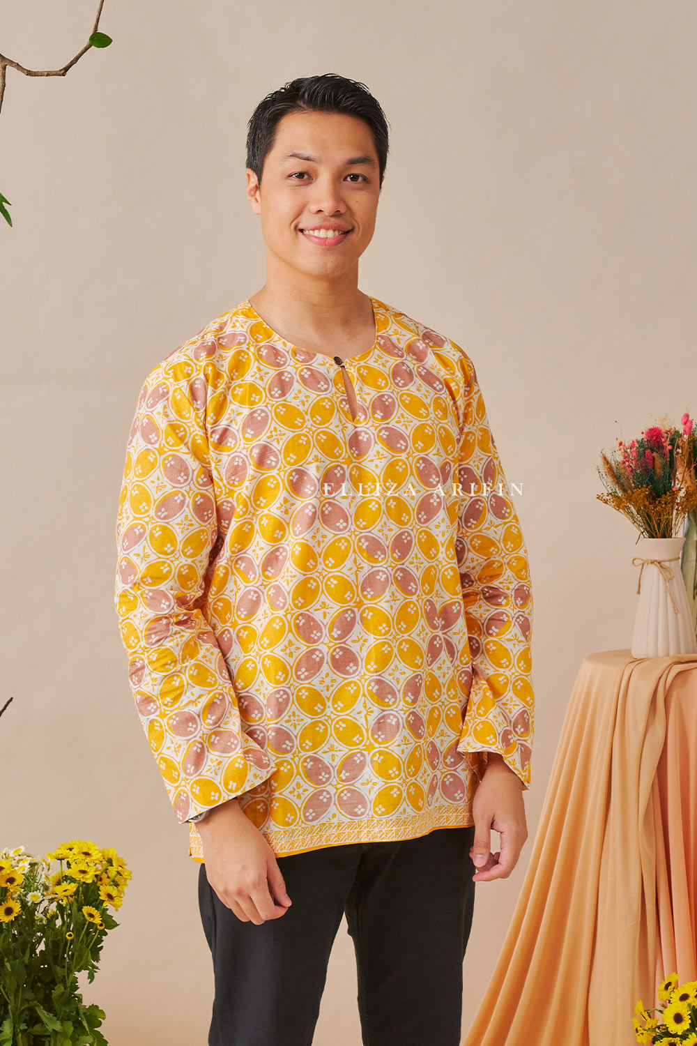 Baju Melayu Batik in YellowBaju Melayu Batik in Yellow
