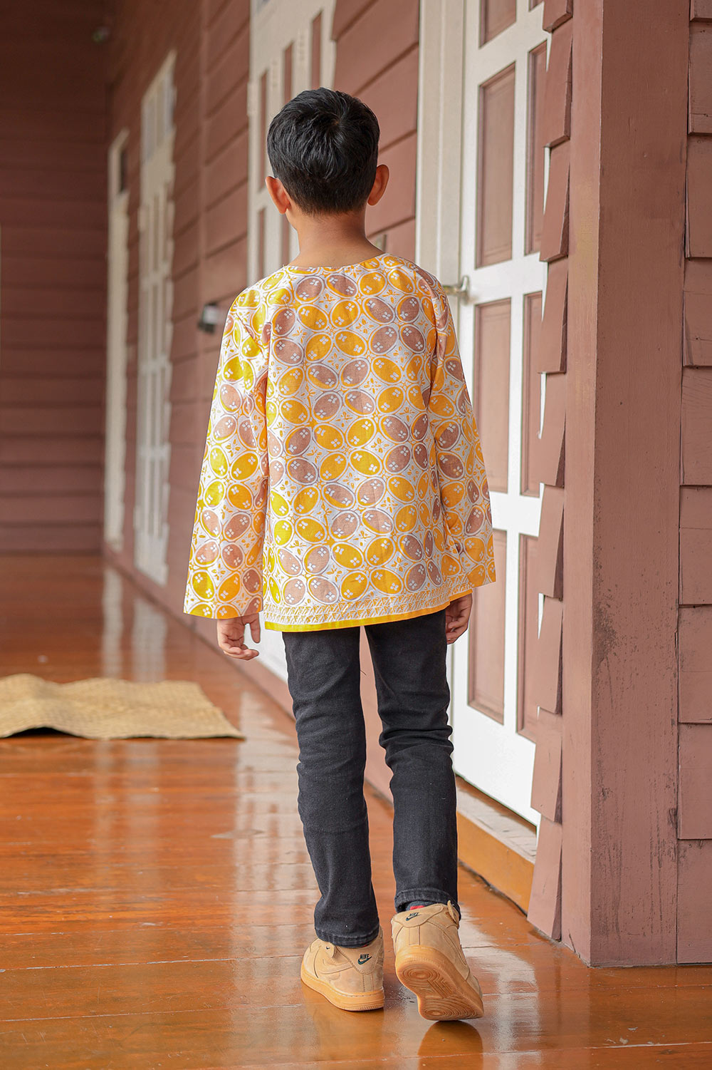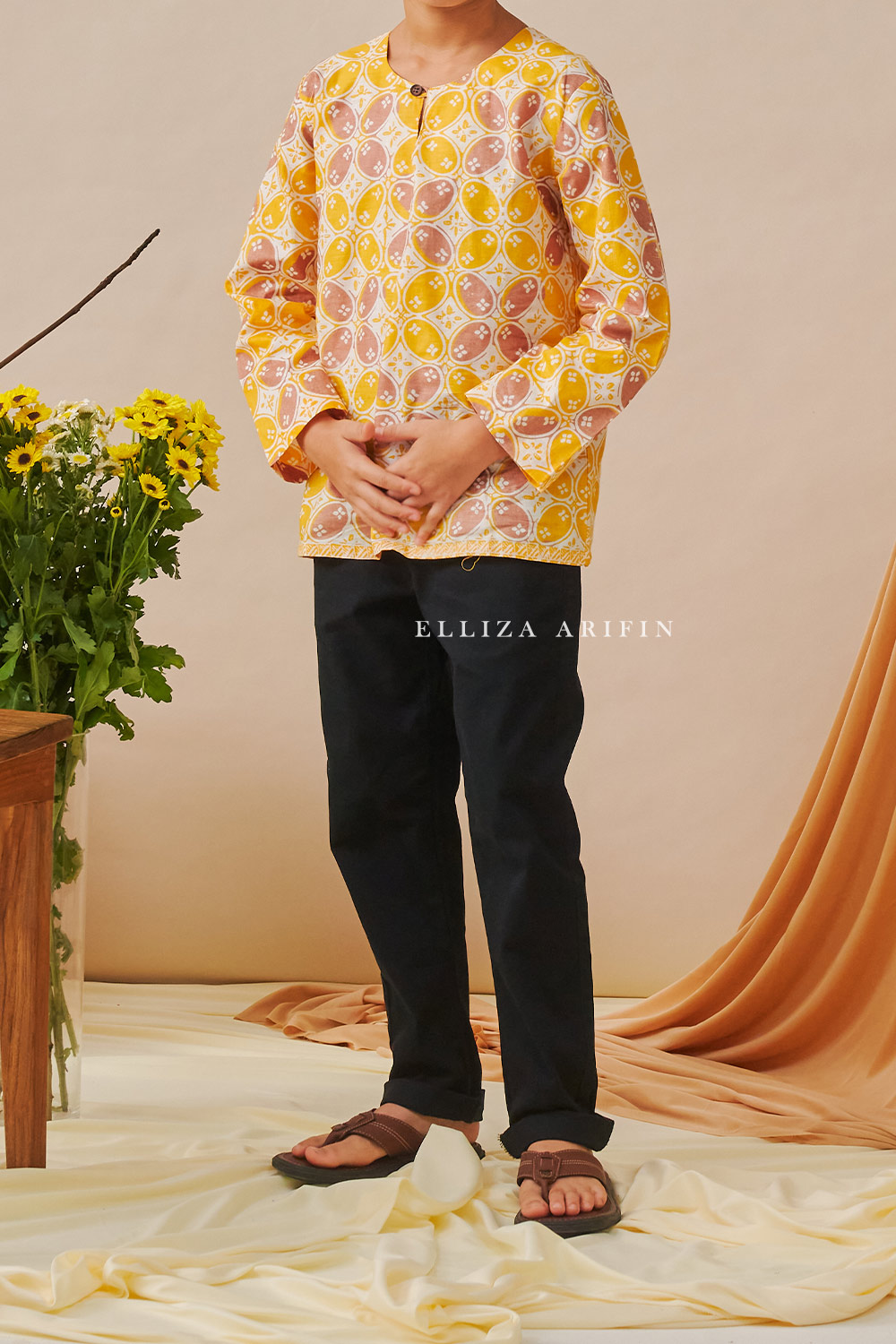 Kurta Batik Kids is made of Premium Handstamp Batk Cotton. The design is both cool and classy. It has a round neckline with button fastening. It is designed to be worn during Raya. The kurta will bring out the elegant side of you!
