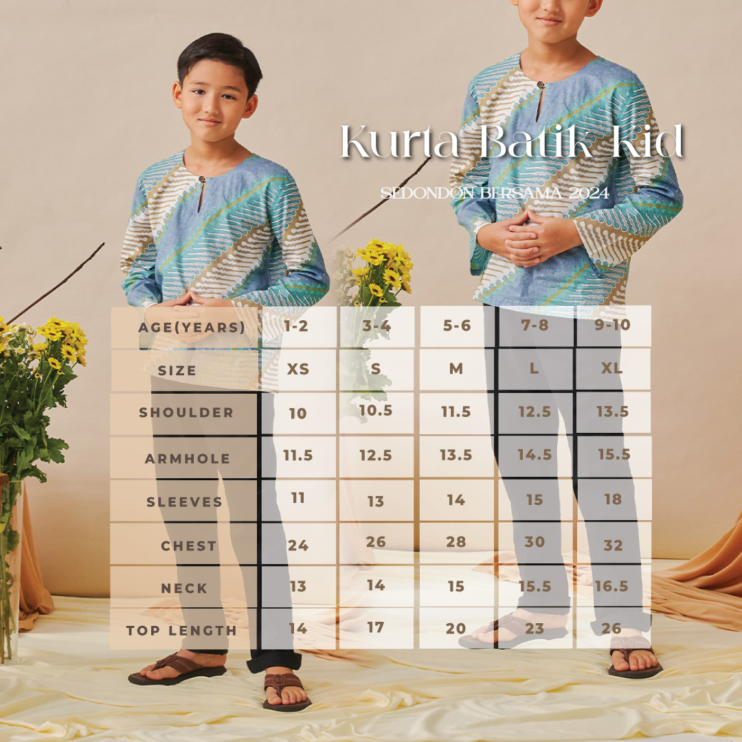 Kurta Batik Kids is made of Premium Handstamp Batk Cotton. The design is both cool and classy.  It has a round neckline with button fastening. It is designed to be worn during Raya. The kurta will bring out the elegant side of you!