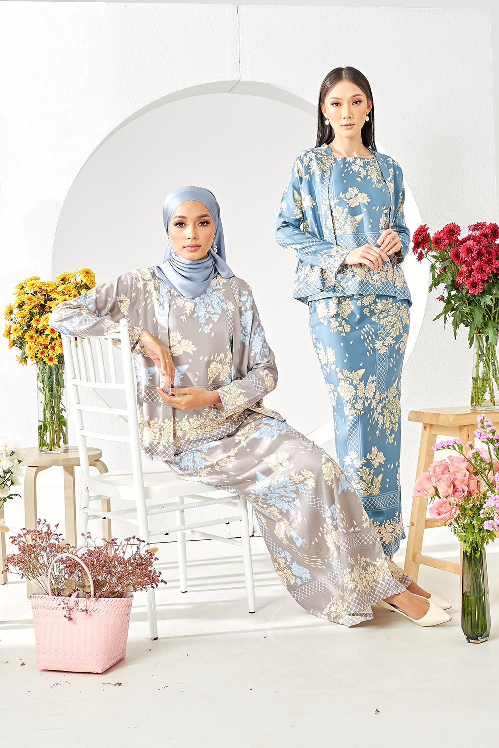 The Mekar Kurung collection is inspired by classic look in a modern style. Also known as three-piece sets consists of a pair of skirt, a sleeveless top and a outerwear. This skirt is cut in a 'kipas belakang' cutting and is available in 6 gorgeous colours. As for the material, it is made from comfortable and airy Dior Silk fabric. The skirt is made from same fabric and softly gathered to create a stunning drape as you walk.​