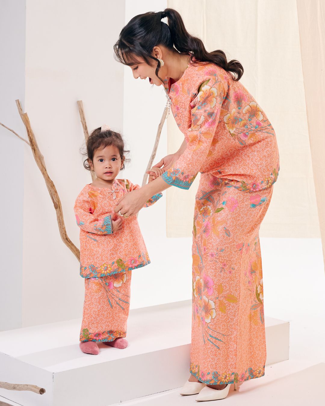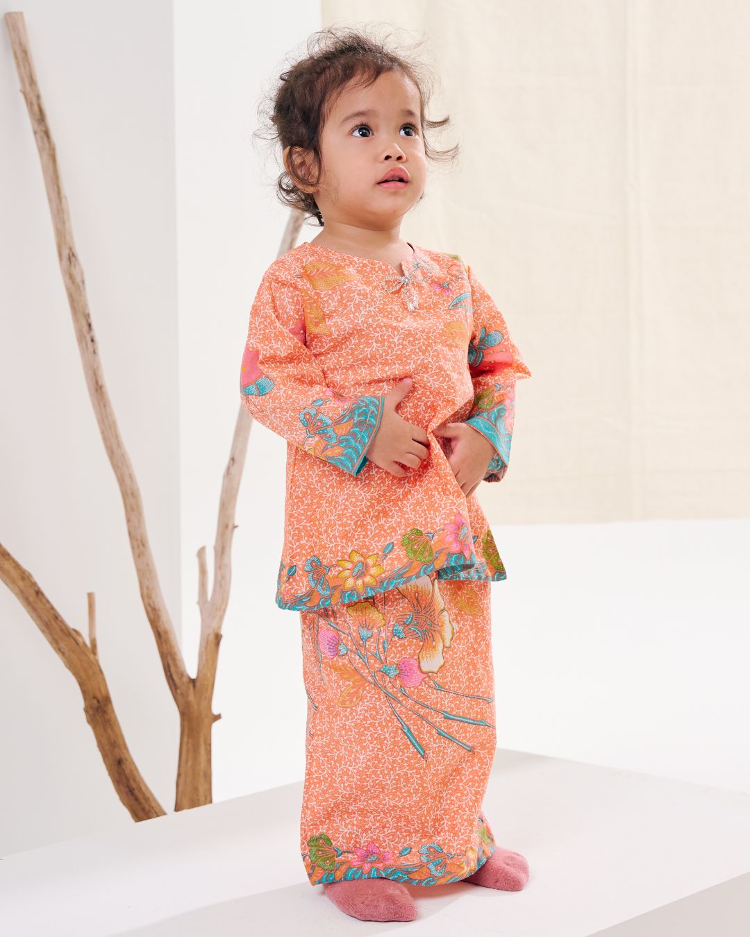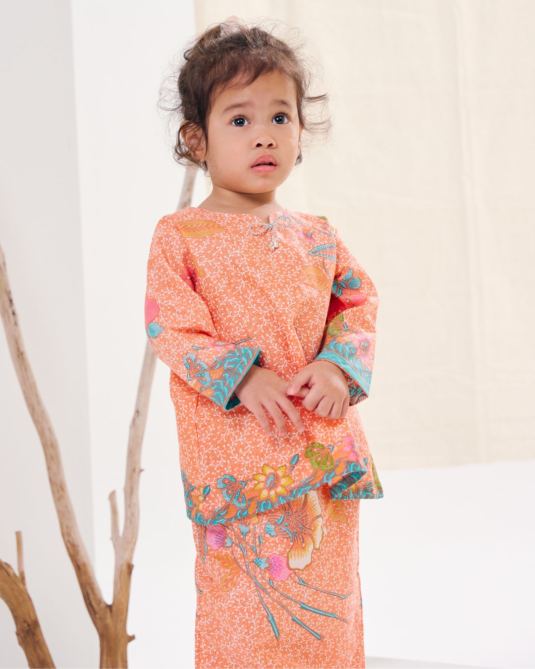 Adorned with beautifully detailed batik motifs and a harmonious colour palette, this Serina Kurung Kids is designed to shine during festive celebrations, family gatherings, and meaningful occasions. The comfortable matching skirt offers ease of movement while preserving modest elegance.